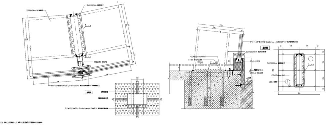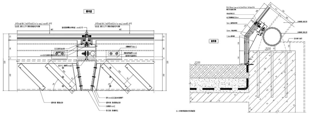 這樣的做法不僅可以節(jié)省成本,同時能確保外立面整體的呈現效果。另外,框架式安裝的方案型材不能整體閉腔,對于雙向拉彎有很大的加工困難,單元式安裝型材整體閉腔,恰巧規(guī)避了這一難題。關于此優(yōu)化做法,后期也進行了專利申請。