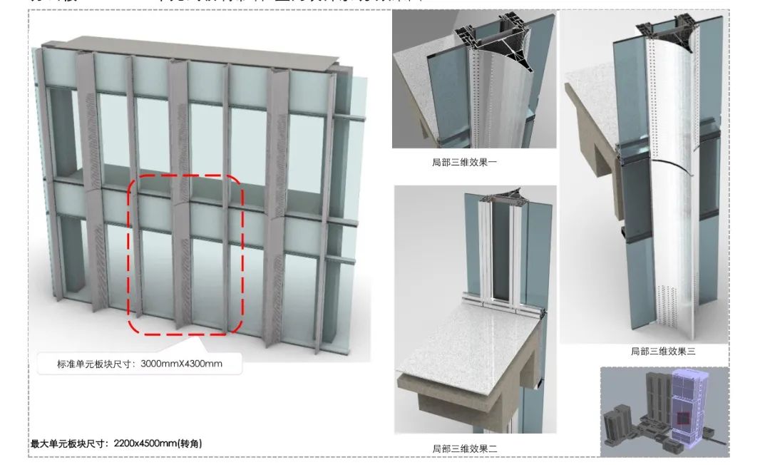 為了落實(shí)項(xiàng)目效果,驗(yàn)證設(shè)計(jì)效果,我們與項(xiàng)目幕墻施工方,針對(duì)多功能廳、裙房商業(yè)、辦公樓公寓住宅等制作了幕墻VMU視覺(jué)樣板。同時(shí),還針對(duì)項(xiàng)目中的重難點(diǎn)部分弧度板、排水孔、單元鋁板等極具挑戰(zhàn)的工藝部分,進(jìn)行了等比例的樣板測(cè)試。