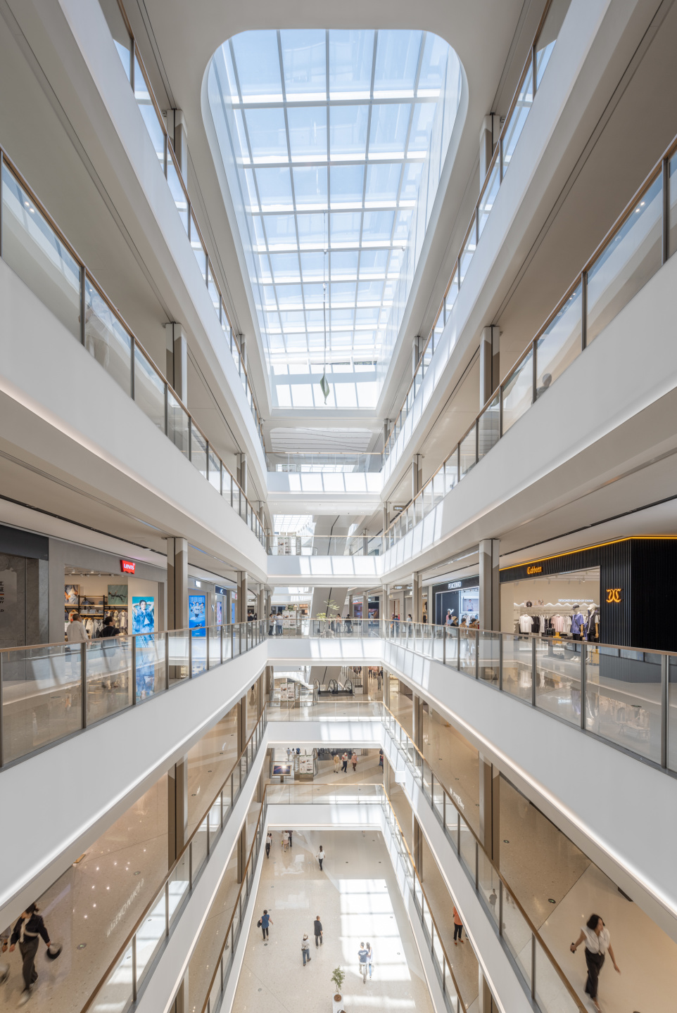 項(xiàng)目匠心規(guī)劃多處采光頂,以強(qiáng)化自然光照。玻璃采光頂系統(tǒng)的玻璃選用三片超白+白色釉點(diǎn)夾層的中空玻璃,兼具自遮陽(yáng)功能,室內(nèi)外景致無(wú)縫銜接,觀感和諧悅目。