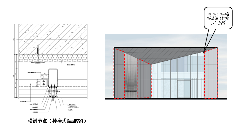 展示中心以鋁板幕墻系統(tǒng)、石材系統(tǒng)、采光頂系統(tǒng),鋁板雨棚系統(tǒng)相結(jié)合的方式,在南立面主入口采用T型鋼板肋幕墻系統(tǒng)。主入口大面鋁板采用掛接形式 鋁板與鋁合金掛碼通過(guò)焊釘在加工廠完成 鋁板鋼龍骨焊接U型鋼槽 U型鋼槽上開(kāi)孔對(duì)穿螺栓 鋁板通過(guò)鋁合金掛碼掛接在螺栓上鋁板膠縫為6mm小膠縫整體看起來(lái)鋁板既平整又精致美觀。