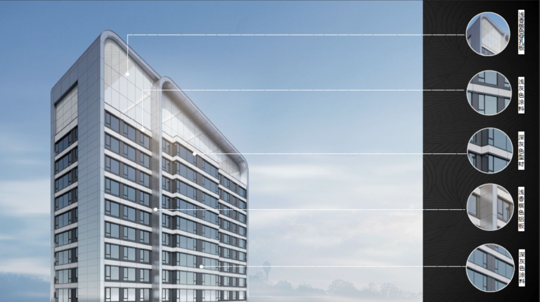 建筑外立面,大量采用香檳色的鋁板,輔以玻璃、型材線腳與涂料的設(shè)計(jì),形成優(yōu)雅和舒展的建筑效果。在保證整體顏值的前提下,通過(guò)各個(gè)細(xì)節(jié)元素去觸動(dòng)居住成員間的深層感官。