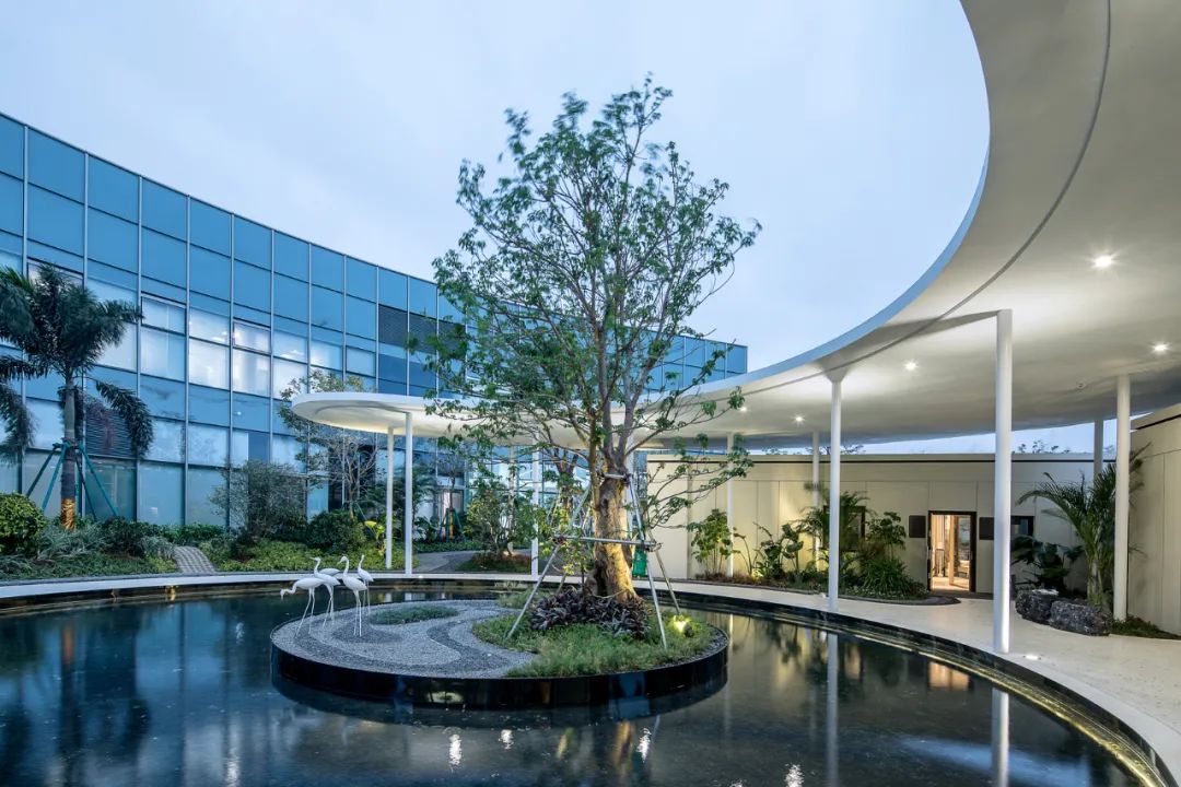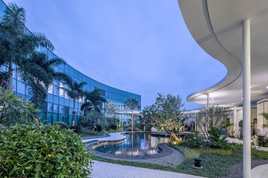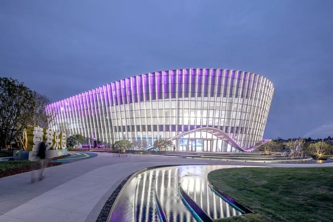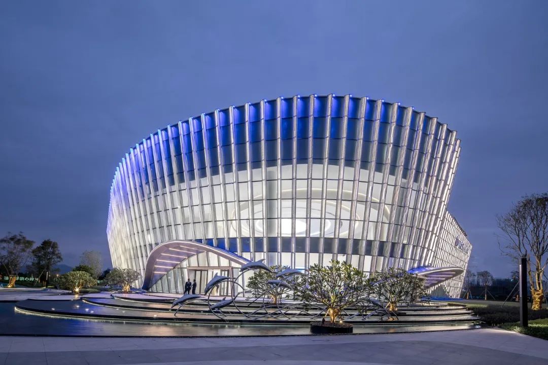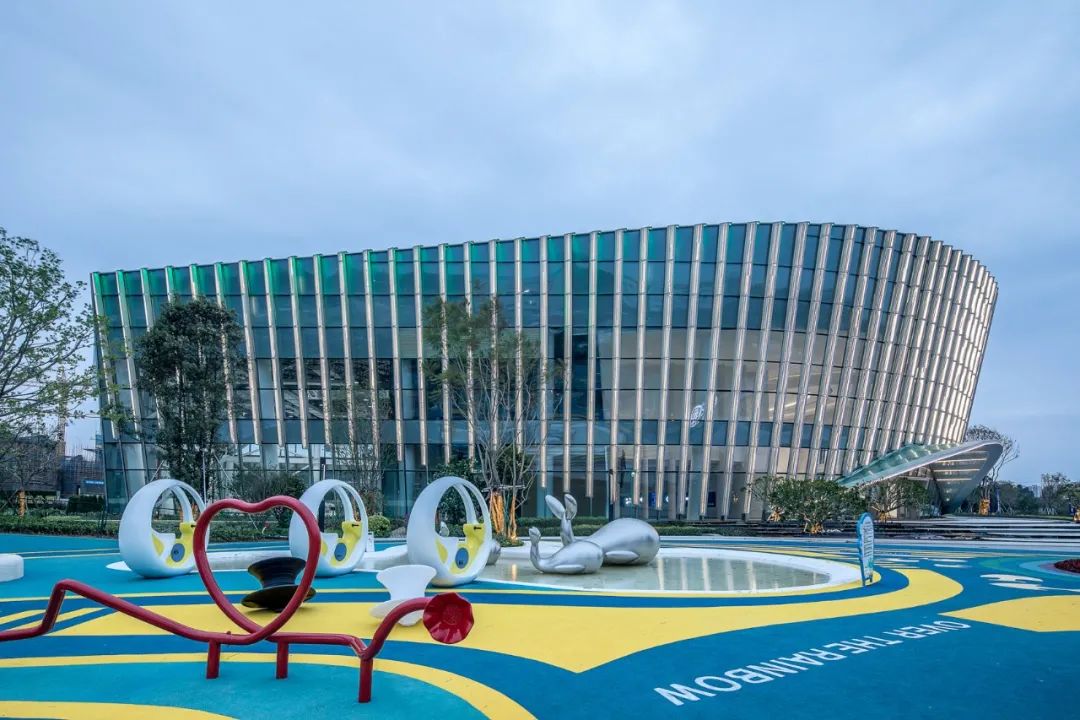 除此之外,線條律動,建筑主體與周身環(huán)境有序排布,和諧共存。場景內打造隨“海浪”逐流的巨鯨、海豚群以及各色漣漪狀雕塑,使得整片區(qū)域氤氳海洋氣息,隨清風拂面,與濱海風光遙相呼應。