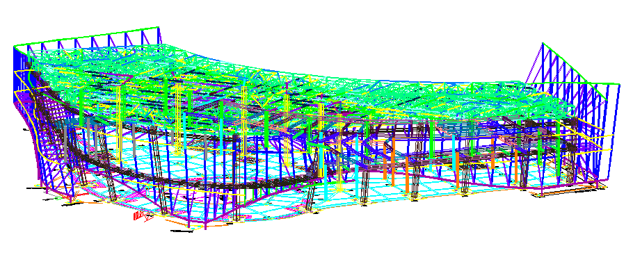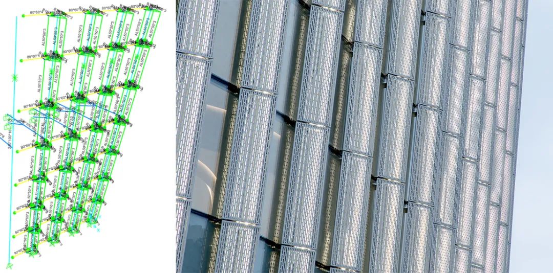 從效果和模型上不難發(fā)現(xiàn),此做法聯(lián)系內外幕墻的桿件較多,但是結構桿件的合理性對于實際效果、主體結構和幕墻等都有影響,若鋼架設計不合理,將會對后期實施落地造成許多困難。