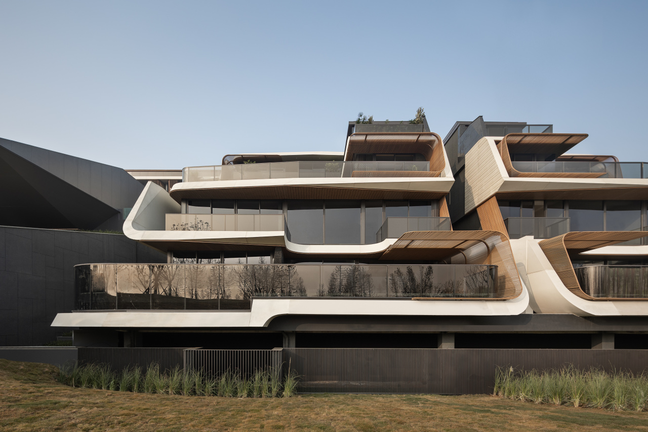 在設(shè)計(jì)階段,塔希提設(shè)計(jì)團(tuán)隊(duì)獨(dú)具慧眼地運(yùn)用了與東側(cè)湖泊及景觀點(diǎn)之間約10米的自然高差,而非采用傳統(tǒng)的削峰填谷手法,而是順應(yīng)自然之勢(shì),讓建筑如同山巒般層層遞進(jìn),完美詮釋了“見(jiàn)山還是山”的東方哲學(xué)之美。