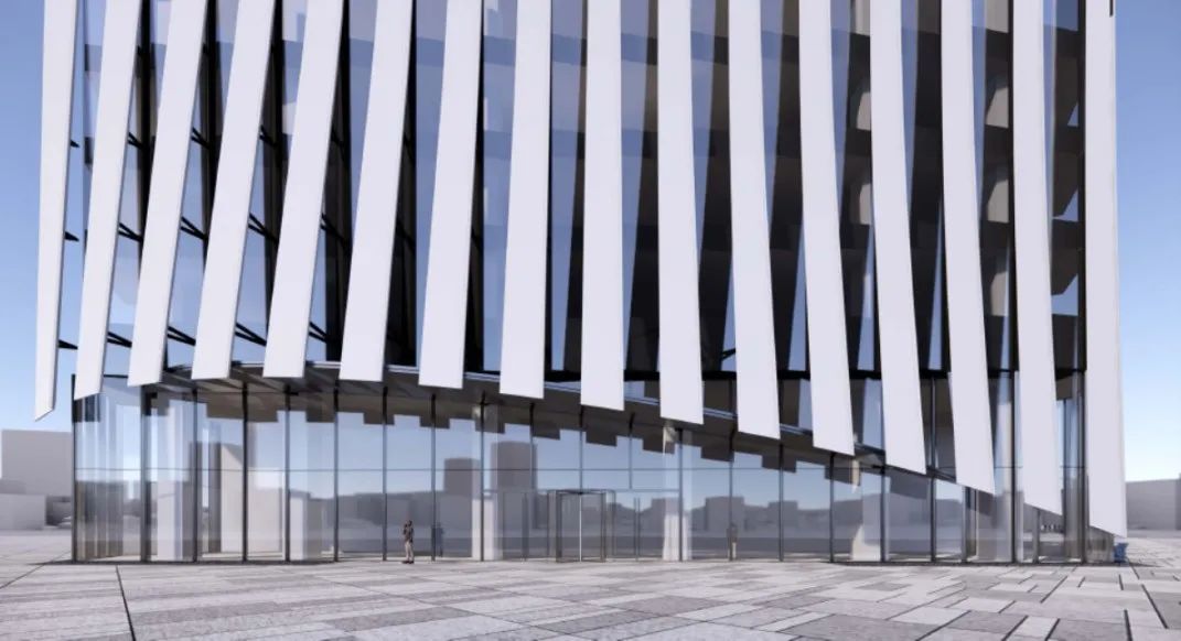 定制豎向百葉五金構(gòu)件,完美實(shí)現(xiàn)玻璃百葉收尾相接,既滿足建筑設(shè)計(jì)意圖又符合安全的幕墻設(shè)計(jì)主旨。