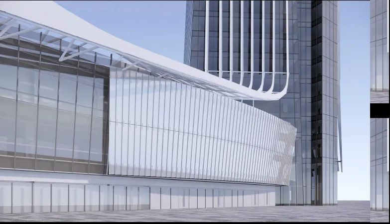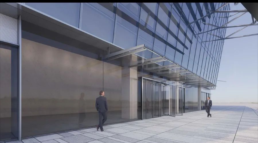 雨棚:雨棚梁在玻璃上方,玻璃面接近人,而鋼結(jié)構(gòu)被擋在上方,整個(gè)雨棚更為干凈整潔,大堂入口極窄邊框設(shè)計(jì),超大玻璃板塊運(yùn)營(yíng),增加通透感。
