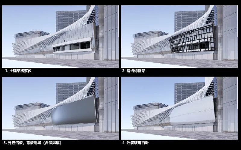 立面漸變飛翼,跨板塊分析,超大板塊研究及單元板塊的穩(wěn)固加強(qiáng)系統(tǒng)設(shè)計(jì)。