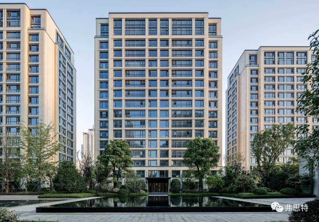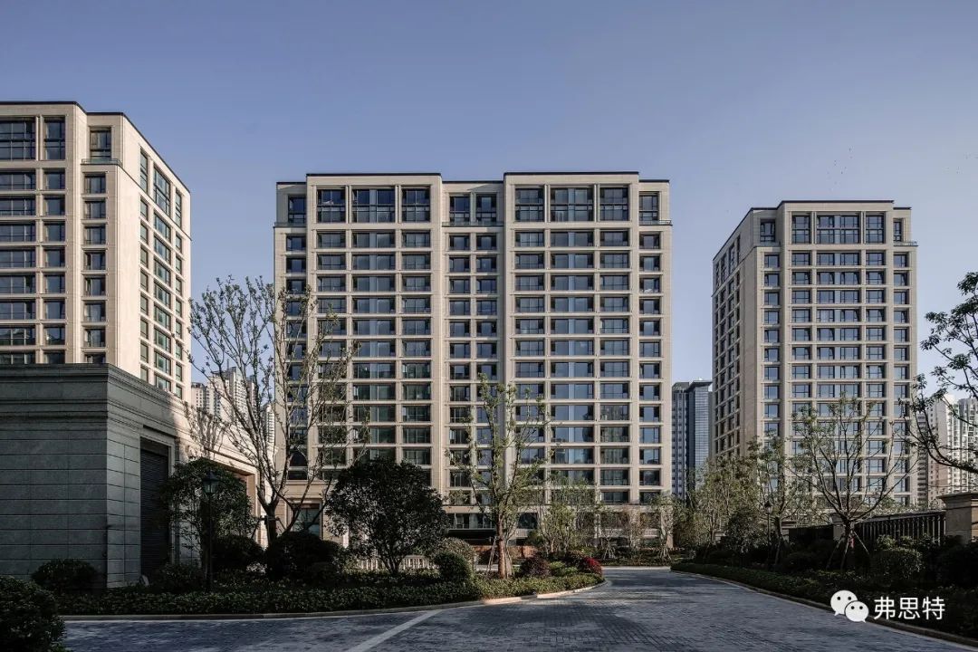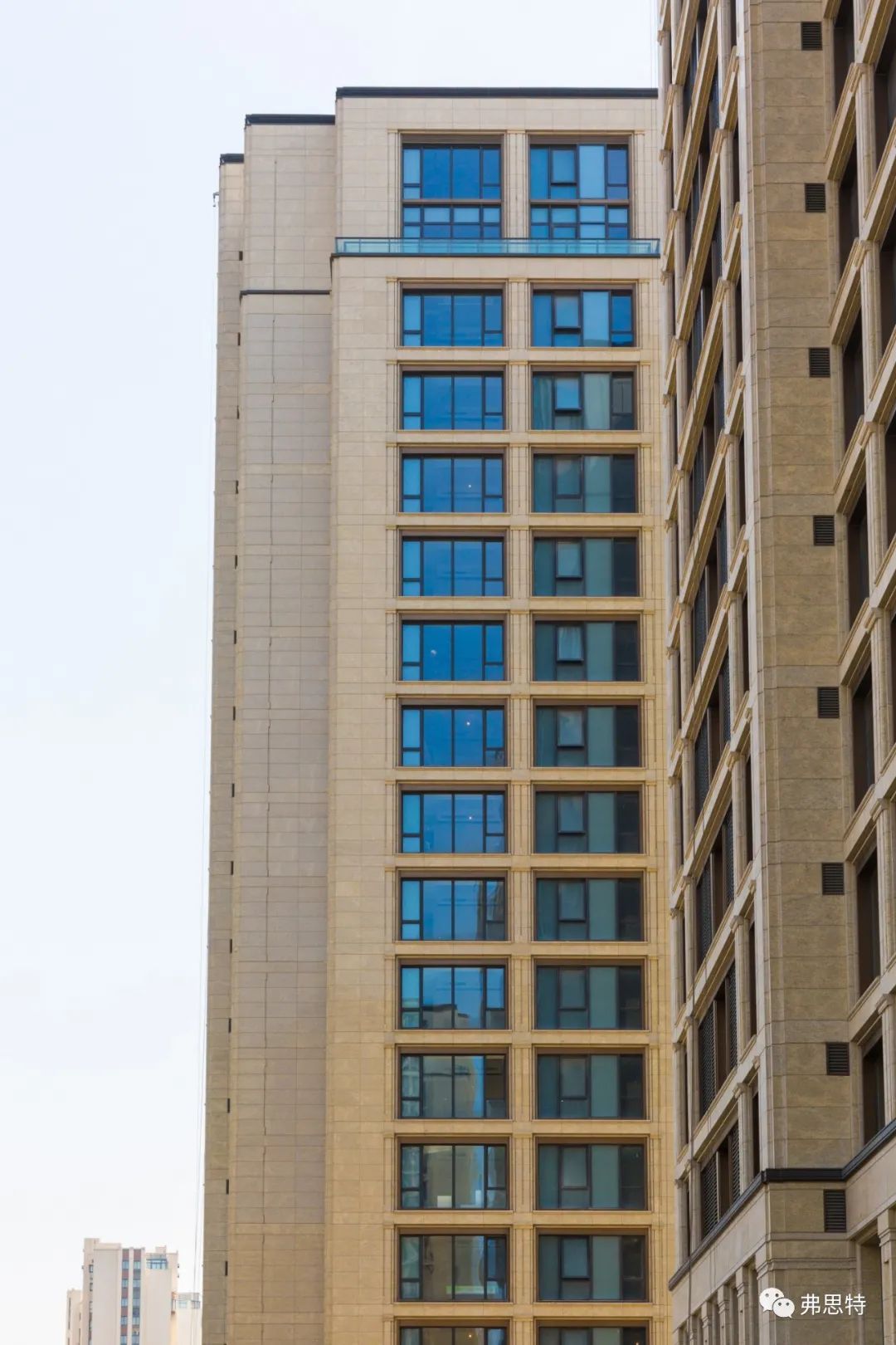 不難發(fā)現(xiàn),每間公寓都設(shè)有全屋落地窗,使住戶可以盡情享受向一線江景與城市天際線敞開的視野。立面肌理注重虛實(shí)的黃金比例關(guān)系,虛為主,灰藍(lán)色系統(tǒng)窗玻通透輕巧;實(shí)為輔,淺色系典雅石材裝點(diǎn)不凡,側(cè)面、轉(zhuǎn)角等部位同樣有著細(xì)致表達(dá),整個(gè)外立面在虛實(shí)之間流暢切換,相得益彰。