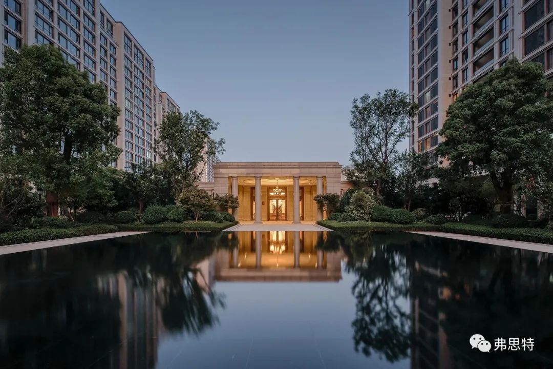 整個(gè)項(xiàng)目是典型的新古典主義建筑風(fēng)格,經(jīng)典的三段式結(jié)構(gòu),為了將項(xiàng)目品質(zhì)推上新的高度,首次在建筑住宅中引入紫銅天棚,采用2mm不銹鋼板,表面仿銅處理,高還原度地實(shí)現(xiàn)了設(shè)計(jì)師想要的設(shè)計(jì)效果。
