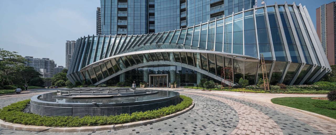 尚東柏悅府項(xiàng)目的點(diǎn)睛之筆在于入口,入戶(hù)大堂外立面豐富的曲面變化,通過(guò)平板與彎弧玻璃結(jié)合交接設(shè)計(jì),最終實(shí)現(xiàn)了建筑師對(duì)作品的外立面效果高難度要求。