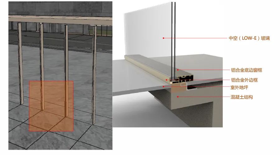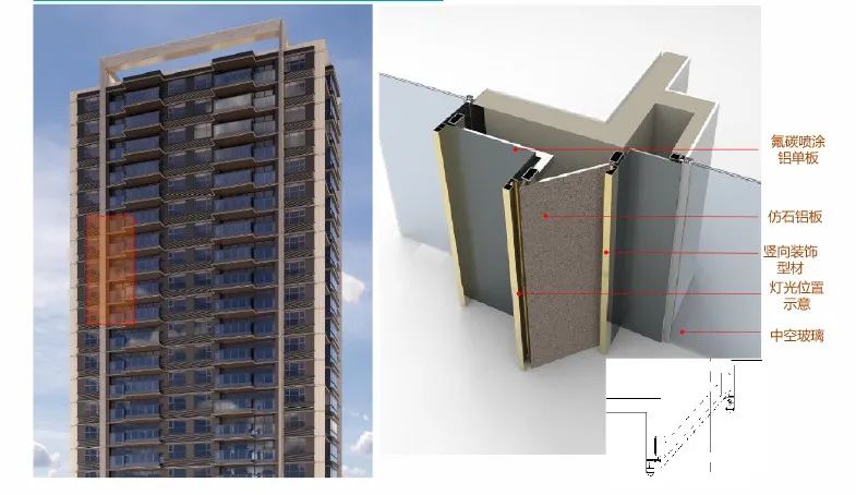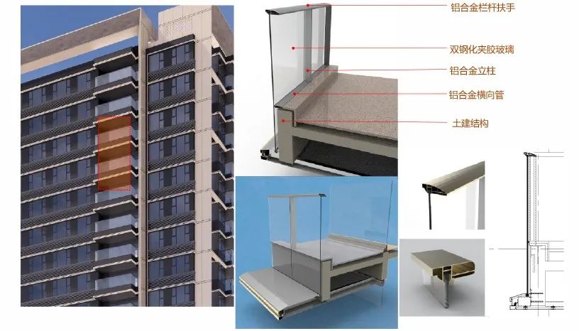 1、陽(yáng)臺(tái)底部收口增加橫向裝飾管與內(nèi)裝石材封修,打膠處理,層間玻璃背基黑色。陽(yáng)臺(tái)底部選用鋁板吊頂,和陽(yáng)臺(tái)底部檐口鋁板一平。