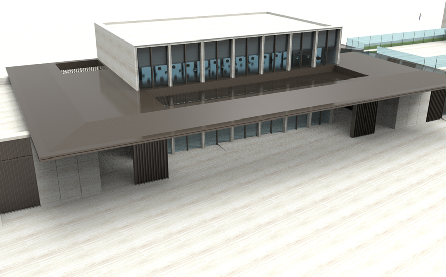 迎賓樓:豎向金屬大線條和明框玻璃幕墻完美結(jié)合,雨棚吊頂采用密拼處理,避免鋁板中間出現(xiàn)大的膠縫。