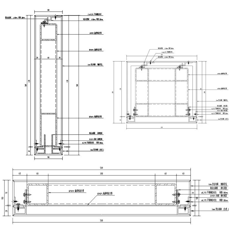 ①立面復(fù)合板格柵為裝飾構(gòu)件,格柵與鋼龍骨固定位置固定螺釘不能外露;