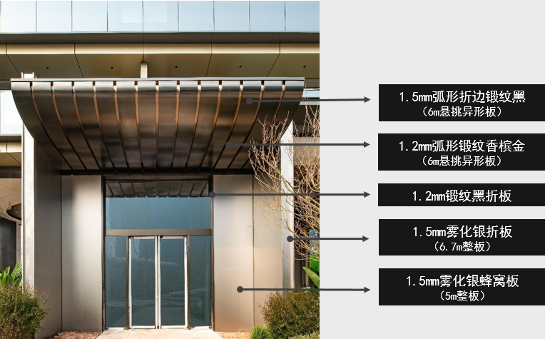 此外,不銹鋼厚度到底怎么選?到底是越厚越好還是越薄越好?通過對平板板幅、弧板弧度、折邊工藝等角度考慮,選用了1.5mm不銹鋼產(chǎn)品,可滿足門廳異型造型板對方案效果的完美實現(xiàn)。