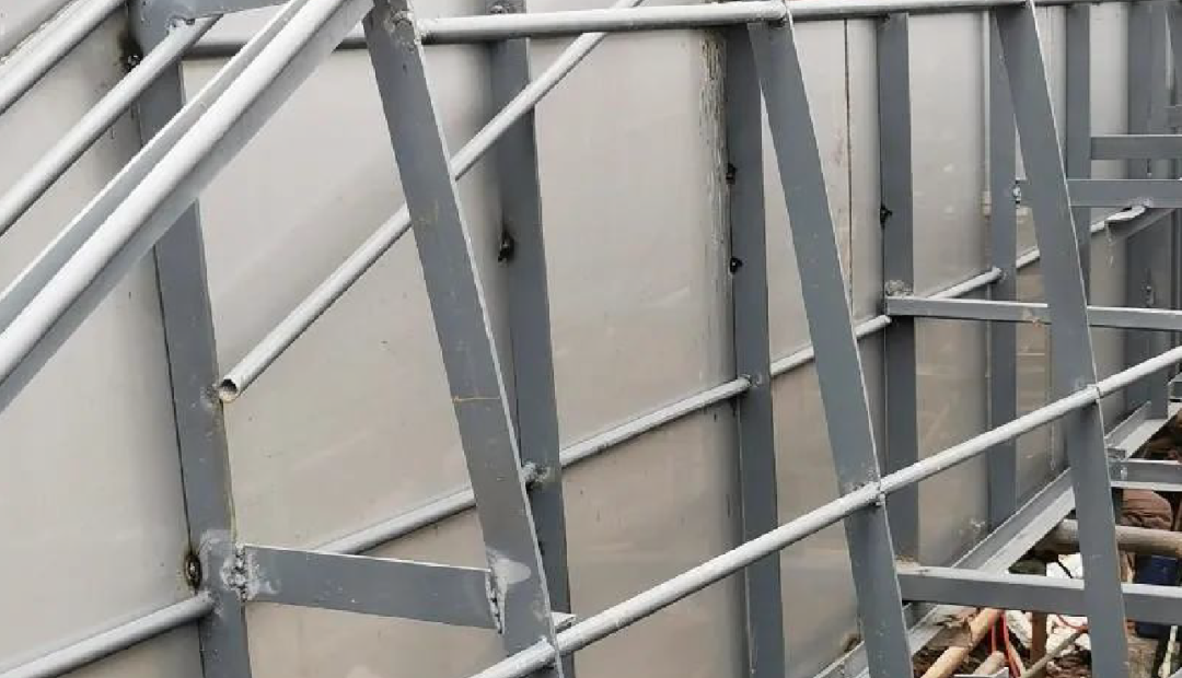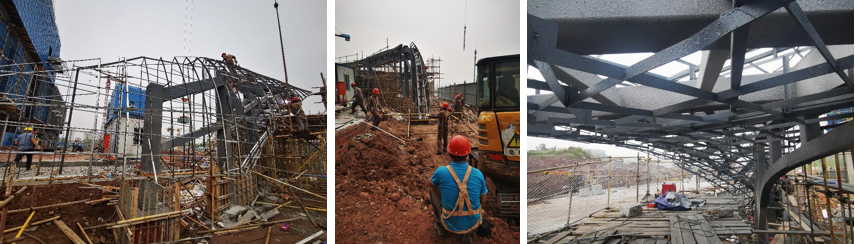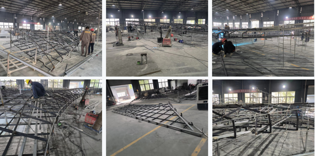 鋼架制作重難點在整體成型的安裝中,對鋼架焊接安裝的平整性要求高,鋼架安裝的準確度直接影響面板安裝精度及平順程度,所以副鋼架在排料切割時提前切割好了各個部位卡扣,并對所有副鋼構(gòu)件進行打標編號。