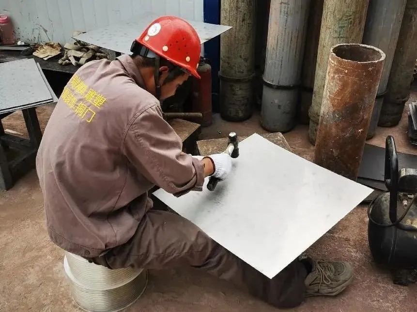 面板安裝要求整體平順、無褶皺、無缺失、無突兀形變,不銹鋼安裝需隨時復(fù)核控制節(jié)點,控制累積偏移量。施工前提前對板面進行大區(qū)塊分區(qū),每個大區(qū)塊又由各個鍛造面板組成,板面接縫處先點焊固定,完成大區(qū)塊的整體面板初安裝后,再檢查板面接縫,多角度檢查區(qū)塊板面效果,無缺失、無突兀形變,還原設(shè)計要求合格后方可對板面加固。板與板的密焊需注意板面的熱形變,隨焊隨調(diào),完成焊接后進行拼縫打磨,刮灰,修補瑕疵。