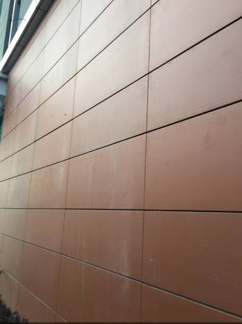 幕墻分格以建筑軸為主要控制軸,幕墻分格寬度控制在1400mm~1500mm。玻璃分格高度以落地大玻璃窗、上亮為主,分格干凈利落。石材豎向分格和陶板一致,長寬比控制在控制在2.5以上。