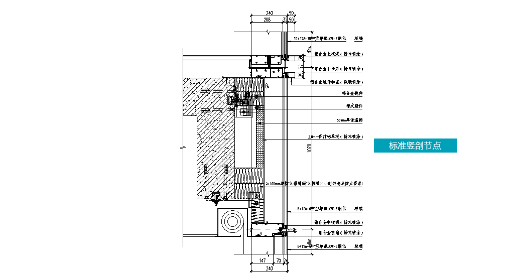 系統(tǒng)位于裙樓商業(yè)二樓位置,豎向采用明框鋁合金立柱,頂部采用吊掛方式,底部用槽鋁封邊,玻璃選用TP12+2.28PVB+TP12mm密點彩釉夾膠超白玻璃。幕墻在日間和夜間分別形成不同的精彩的視覺效果,為建筑的重要標(biāo)志特征。
