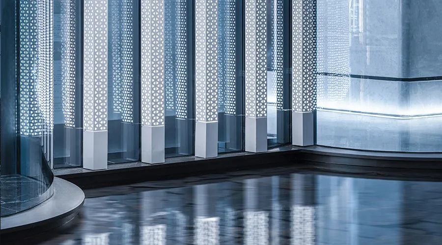 III. 強(qiáng)調(diào)明暗關(guān)系的對(duì)比,用內(nèi)光外透的手法打亮立面穿孔裝飾立柱。