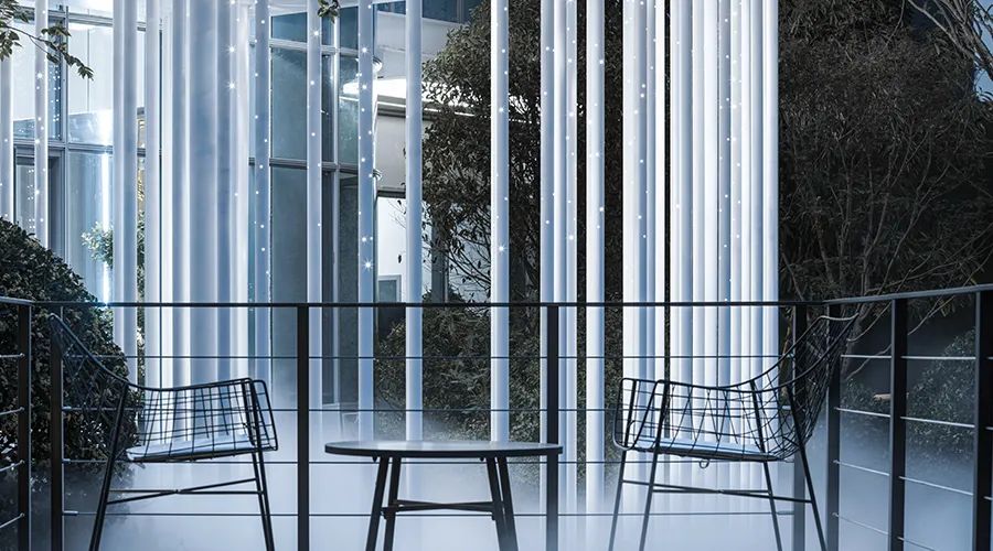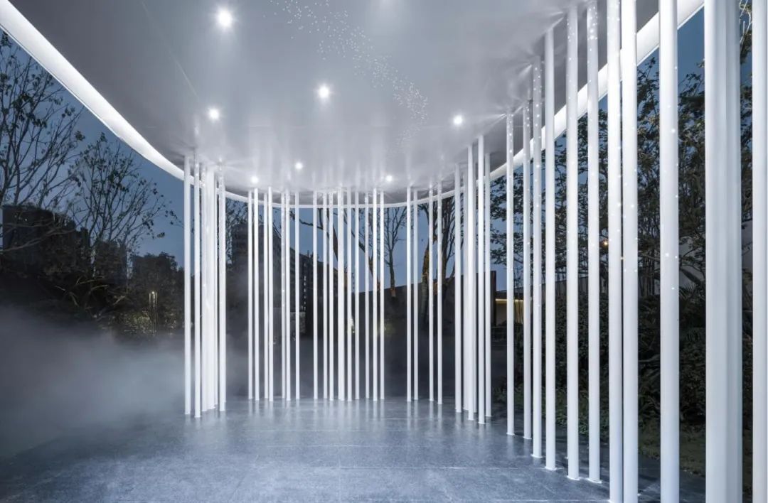 用燈光打開夜間的序幕。純凈的空間在對(duì)燈光的渲染下,彰顯著光與影帶來(lái)的光影綽綽的沉浸式場(chǎng)景,如臨其境。