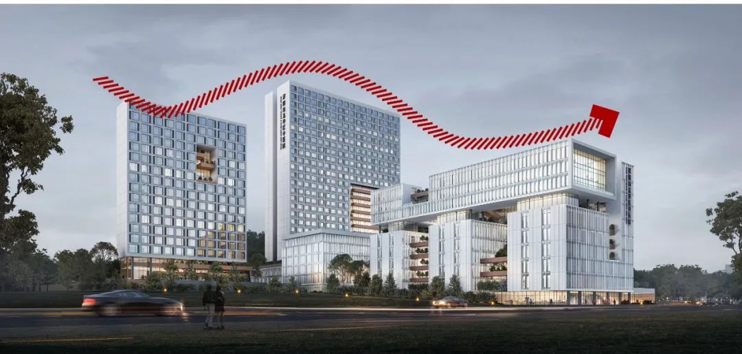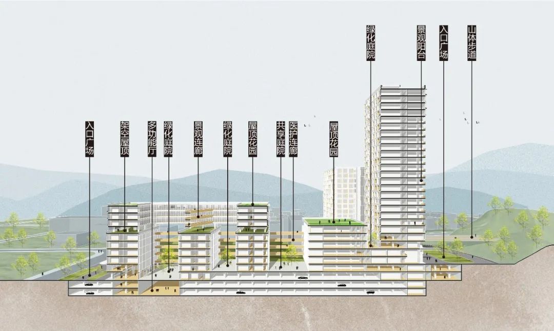 從立體空間內(nèi)尋求“雙碳“可能,賦能醫(yī)院綠色發(fā)展。立面營(yíng)造出垂直綠化生態(tài)環(huán)境,提供舒適、親切的自然環(huán)境的同時(shí)創(chuàng)造城市中心的生態(tài)多樣性,項(xiàng)目與北側(cè)山體公園聯(lián)系,形成一個(gè)整體的綠化系統(tǒng)。