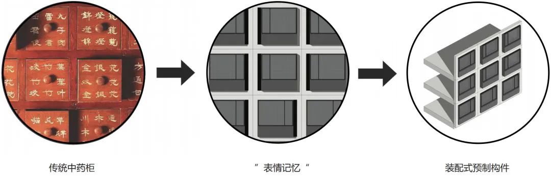 神農(nóng)嘗百草,琳瑯滿(mǎn)目的中藥柜是多數(shù)人對(duì)中醫(yī)的直觀記憶。我們利用模數(shù)化設(shè)計(jì)及工業(yè)化裝配技術(shù),還原了這種形象記憶,承載中醫(yī)學(xué)科的情感。