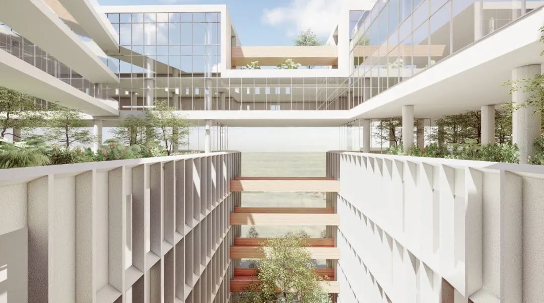 漂浮的醫(yī)療支持中心豐富了立面形體。屋頂設(shè)置了架空花園,助力醫(yī)院可持續(xù)發(fā)展的同時(shí)為醫(yī)護(hù)人員提供了優(yōu)美舒適的科研辦公環(huán)境。