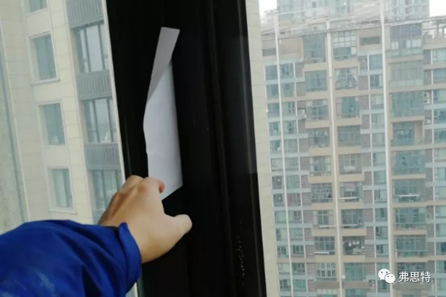 門窗窗扇在關(guān)閉時(shí),由于五金件安裝不到位,導(dǎo)致框扇間存在縫隙,整窗氣密性差,在極端氣候下易造成結(jié)露現(xiàn)象。關(guān)于氣密性有一個(gè)簡(jiǎn)易的測(cè)試方法:可在框扇間夾上一張A4紙,再將窗扇完全關(guān)閉。如A4紙能輕易抽出,則該說明該窗氣密性很差。