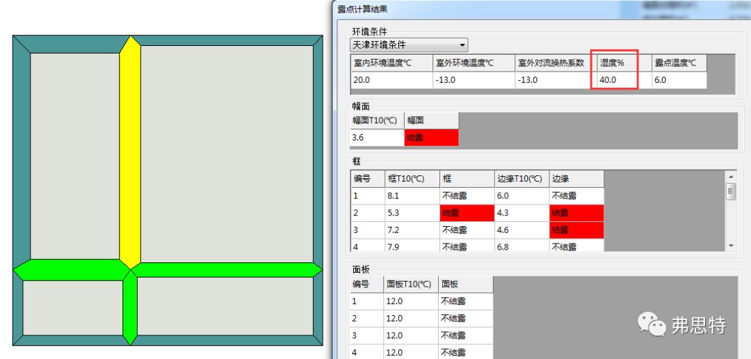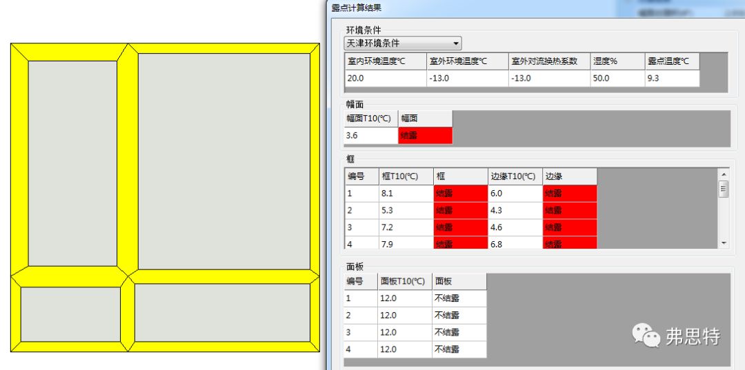 4.整窗結(jié)露設(shè)計(jì)因滿足所在地區(qū)最大溫差要求及室內(nèi)濕度要求。