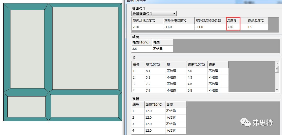 ▲ 上圖為常規(guī)默認(rèn)的濕度30%,結(jié)果顯示不結(jié)露