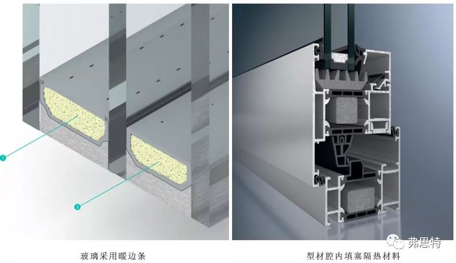 6.玻璃采用暖邊條或在型材腔內(nèi)填塞隔熱材料。