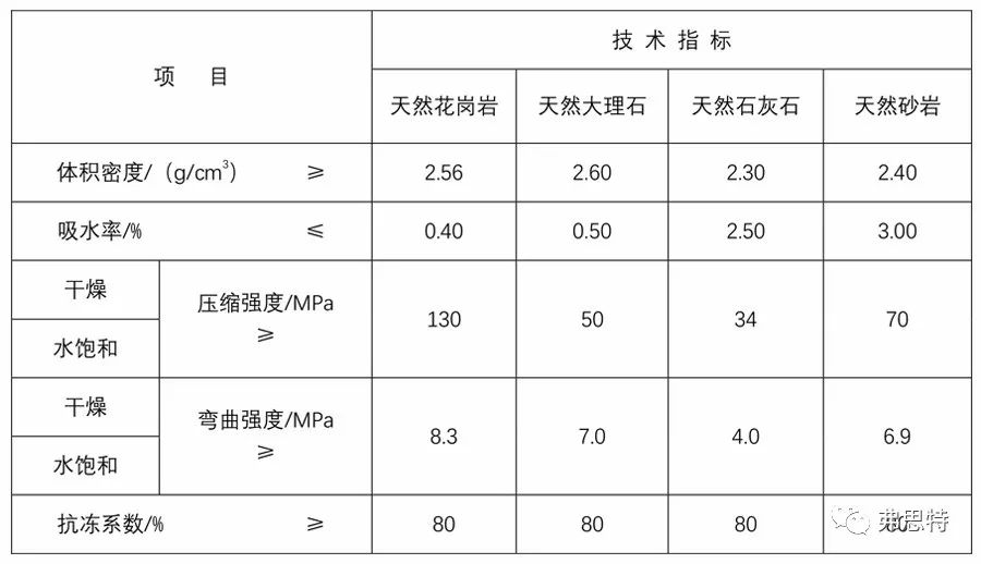 表1-干掛石材物理性能技術(shù)要求(GB/T32834-2016)