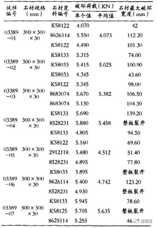 表-4 洞石粘貼不銹鋼角鋼后的實驗數(shù)據(jù)