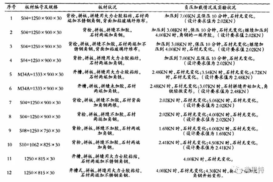 3、在與洞石面板紋理垂直方向的兩邊粘貼不銹鋼角鋼。下面是某項目洞石風(fēng)壓試驗數(shù)據(jù)。