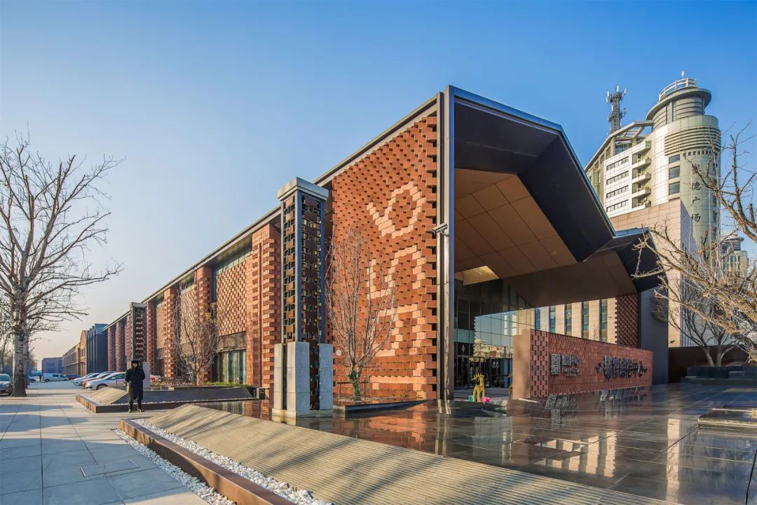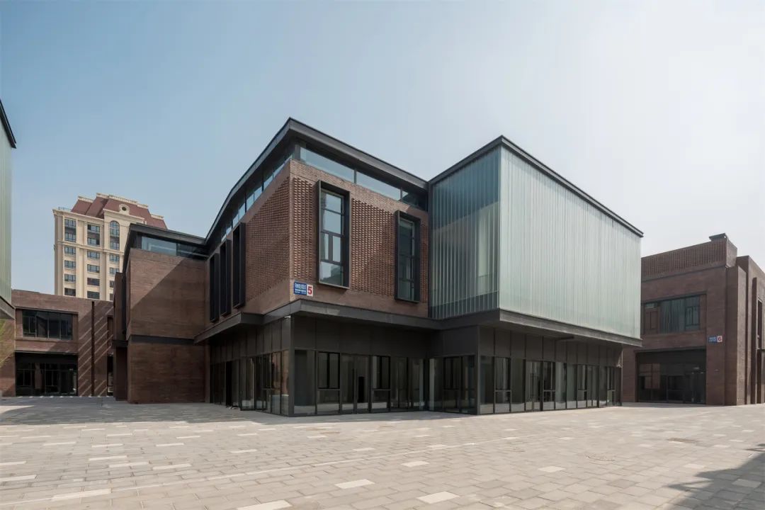 本項目建筑外立面使用了大量的頁巖磚,符合當?shù)厝说膶徝廊∠?。燒結(jié)頁巖磚有很好的耐久性,不易變色。其獨特的線條質(zhì)感,還可通過多樣化的砌筑方法來增加墻面的裝飾效果。為體現(xiàn)老廠房的歲月痕跡,我們設(shè)計時大量采用銹蝕鋼板。銹蝕鋼板的不均勻質(zhì)感與明顯肌理,凸顯舊廠房年代感的同時,也呼應(yīng)了頁巖磚的顏色。建筑外表皮的金屬鋁板外噴銹紅色金屬漆,質(zhì)感細膩挺拔,與紅磚主墻面相得益彰。
