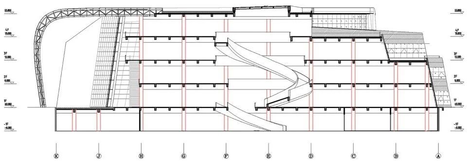 最終依靠幕墻、鋼結(jié)構(gòu)的一體化設(shè)計(jì)解決了這個(gè)高大空間無(wú)支撐結(jié)構(gòu)的問題,取得了極致通透的視覺效果, 解決了甲方、建筑師建筑立面效果需求。