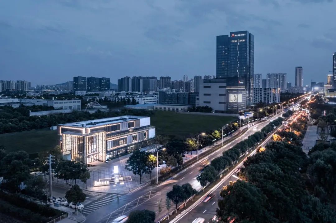 照明設(shè)計(jì)以璀璨星河為概念,融合南京古都韻味,打造別致典雅的燈光造型。立面切割大開大合,線形勾勒,簡約大氣,純凈的水面倒影出建筑的,穿孔板星星點(diǎn)點(diǎn)的肌理,給人以無限的遐想。以建筑為本我,力求通過極簡、純粹的燈光描繪,凸出建筑體態(tài),通過燈光的呈現(xiàn),賦予建筑以生命,使建筑在夜間更加生動、熠熠生輝,夜晚如星河璀璨。逐光而行,對話空間,在相應(yīng)環(huán)境下創(chuàng)造光的場景,塑造一個(gè)以光為語言,柔美星空為指引,結(jié)合藝術(shù)構(gòu)圖,展現(xiàn)現(xiàn)代感、藝術(shù)化的光空間。