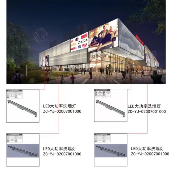 本項目最大的設(shè)計亮點在于,把商業(yè)主體和城市人文融為一體。巧妙運用燈光,打造屬于“泉城”的別具一格的時尚購物中心。在商場的外圍折型穿孔板處,使用的是萬達(dá)標(biāo)準(zhǔn)燈具庫內(nèi),LED大功率洗墻燈,通過內(nèi)置微晶片的控制,能實現(xiàn)漸變、隨機閃爍、跳變、色彩閃爍、漸變交替等動態(tài)效果。在滿足照明需求的情況下,打造更加適宜購物的氛圍。