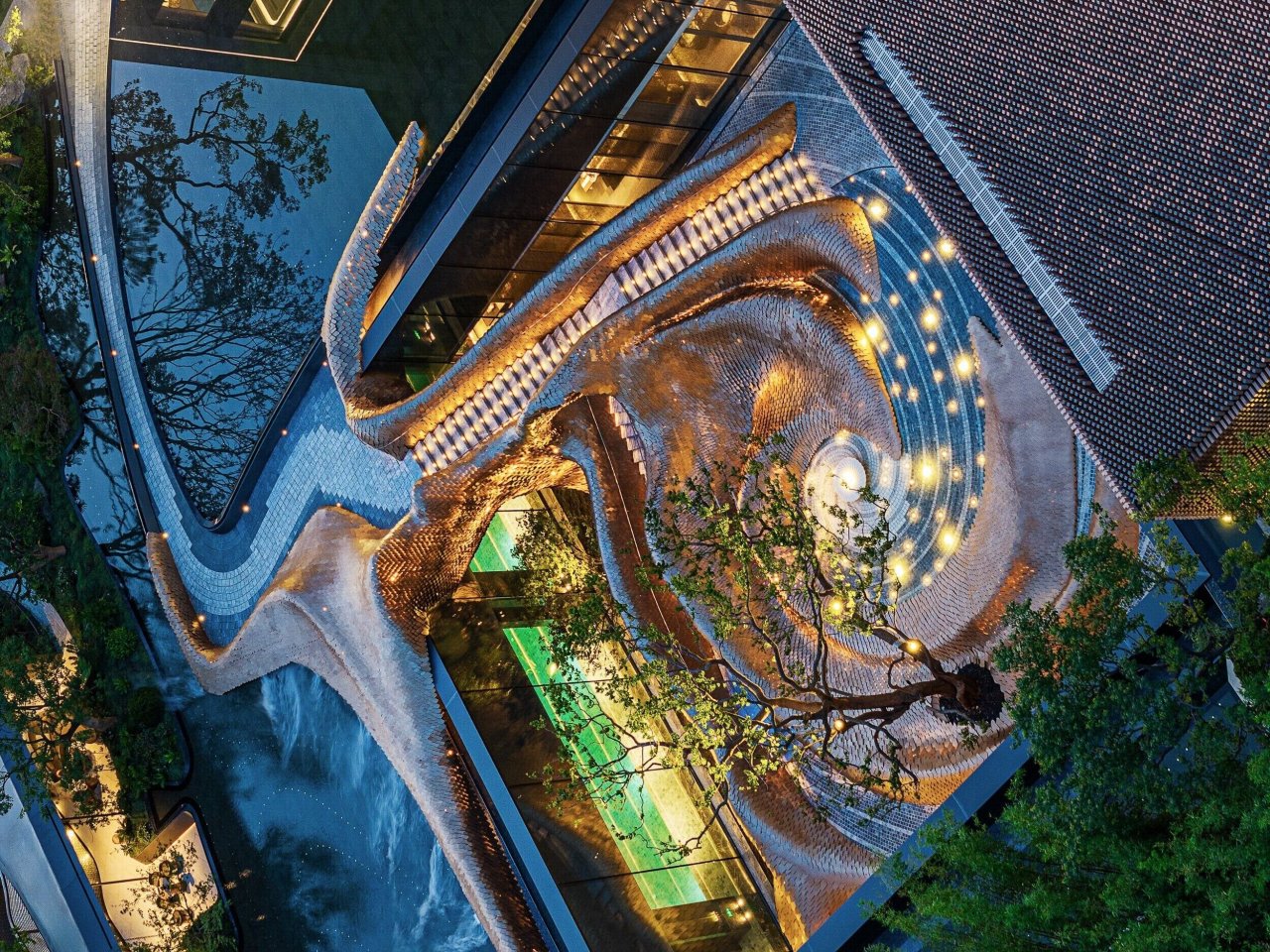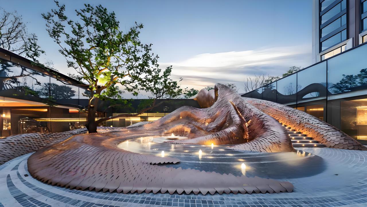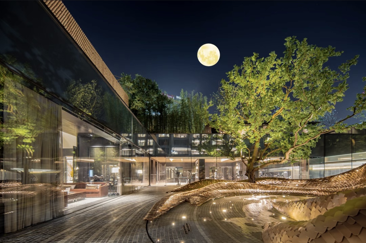 亮點(diǎn)二:下沉庭院鳳凰復(fù)雜表皮燈光