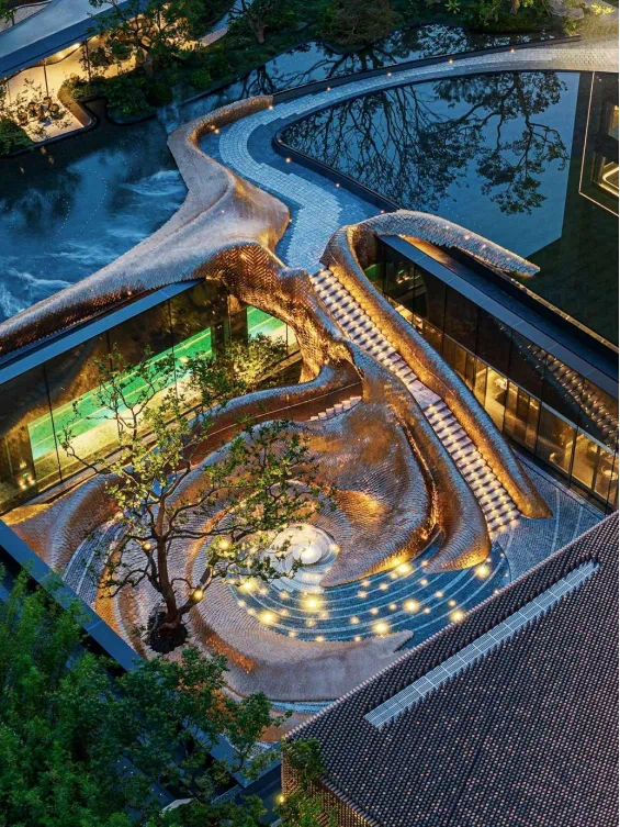 汲取南京深厚的歷史記憶,將 “一朝秋風(fēng)起,葉落滿金陵” 的浪漫韻美重現(xiàn)。古老的青磚黛瓦,在現(xiàn)代設(shè)計(jì)的筆觸下被輕輕喚醒,于光影交錯(cuò)間,訴說著古今對(duì)話的詩意。