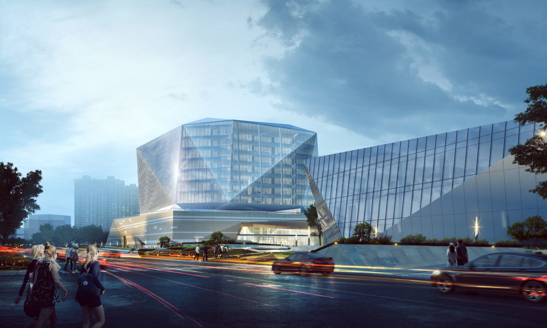 建筑順應江北新區(qū)城市空間發(fā)展要求,因地制宜處理建筑與城市的關系。以平緩低層體量置于用地南端,高層區(qū)域?qū)訉舆f進緩緩升起,彌合珍珠路側(cè)城市界面的缺口。以“典出石城,晶耀江北”為設計概念,打破傳統(tǒng)檔案館的造型局限,營造鉆石形態(tài)的記憶晶體。玻璃、鋁板、人造石等材料有機組織拼合成折面型建筑體量,形成富有特色的建筑整體形象。