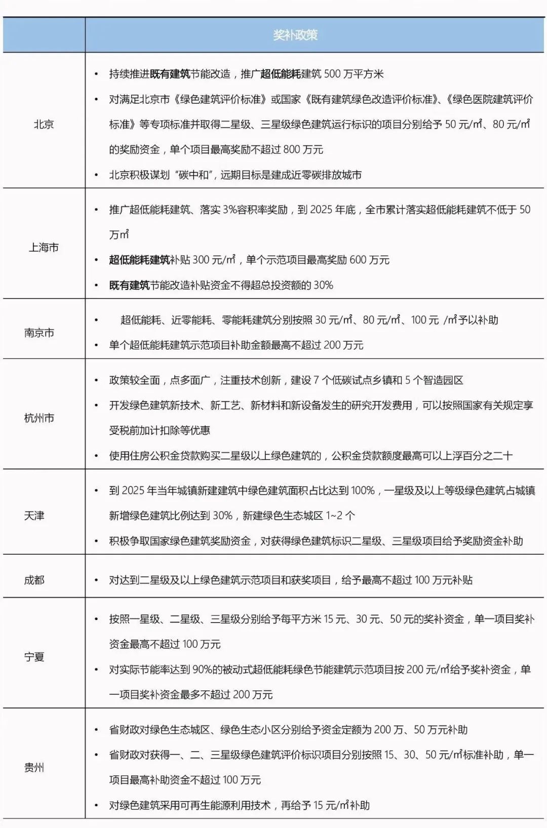 各省、市對于超低能耗建筑提出了明確的發(fā)展指標要求,為了有效推動雙碳工作進展,圍繞碳減排的獎勵、各省補貼政策也陸續(xù)出臺: