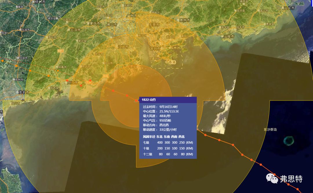 “山竹”登陸時(shí)中心最大風(fēng)速為45m/s, 小于香港、深圳最大可承受的風(fēng)速。另根據(jù)臺(tái)風(fēng)路徑圖顯示,廣州最大風(fēng)速在24.5-28.4m/s,小于廣州最大可承受的風(fēng)速。綜上:規(guī)范設(shè)計(jì)值可滿足“山竹”的要求。臺(tái)風(fēng)半徑圖如下: