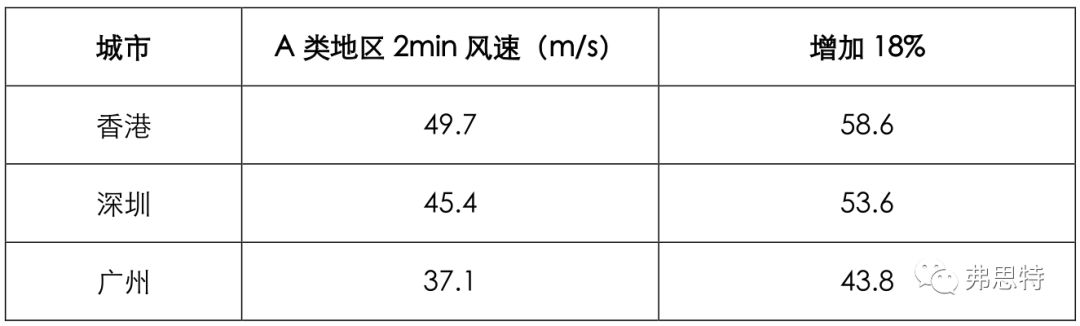根據(jù)網(wǎng)絡(luò)發(fā)布的數(shù)據(jù):廣州陸地測(cè)得最大風(fēng)速為37.3 m/s,深圳最大風(fēng)速為52.7 m/s,香港最大風(fēng)速約為48.6m/s。幕墻進(jìn)行構(gòu)件承載力設(shè)計(jì)時(shí),風(fēng)荷載會(huì)乘以分項(xiàng)系數(shù)1.4,按前文推導(dǎo)方法,風(fēng)速設(shè)計(jì)值約放大18%,計(jì)算如下: