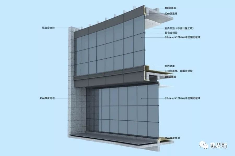 觀點(diǎn)四:幕墻是懸掛在主體結(jié)構(gòu)之外連續(xù)的外圍護(hù)系統(tǒng),而窗則是支座在主體結(jié)構(gòu)之內(nèi)間斷的外圍護(hù)系統(tǒng)。