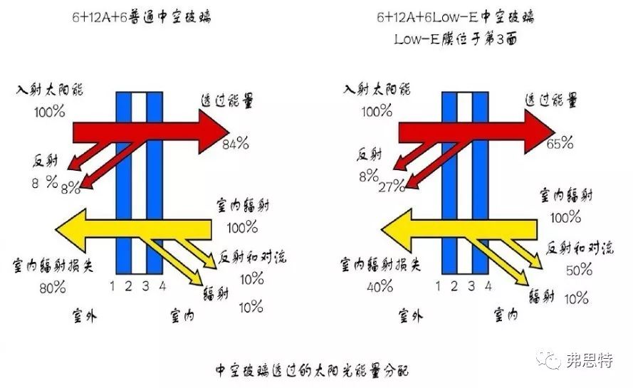 ▲ 中空玻璃透過(guò)的太陽(yáng)光能量分配