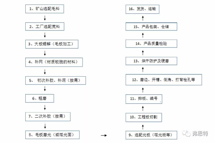 要考察建筑石材板,需要先了解石材加工的工藝流程,根據(jù)工藝流程來確定考察的重要關(guān)注點。