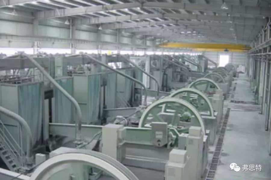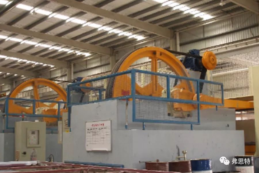 框架鋸或排鋸(圖3、4)。由于使用鋼砂所以亦稱鋼砂鋸,是生產(chǎn)花崗石和大理石板材的常用機械設(shè)備。當今鋼砂鋸的明顯發(fā)展趨勢是自動化和大型化,目前世界上最大的框架鋸一次可生產(chǎn)120塊板材,鋸條行程為80厘米。另外,鋸切工藝參數(shù)可在一定范圍內(nèi)自動調(diào)節(jié),連桿行程實現(xiàn)不停機自動補償。砂鋸的鋸切過程是非連續(xù)性的,因而鋸切速度不可能快,一般不超過2m/s,所以提高生產(chǎn)率的途徑之一就是向大型化發(fā)展,增加每批次的鋸切數(shù)量。